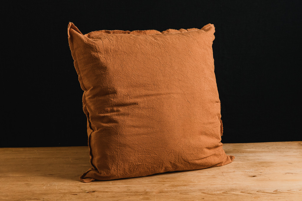 Almohadón tapa y espalda de lienzo. Con un desflecado perimetral.