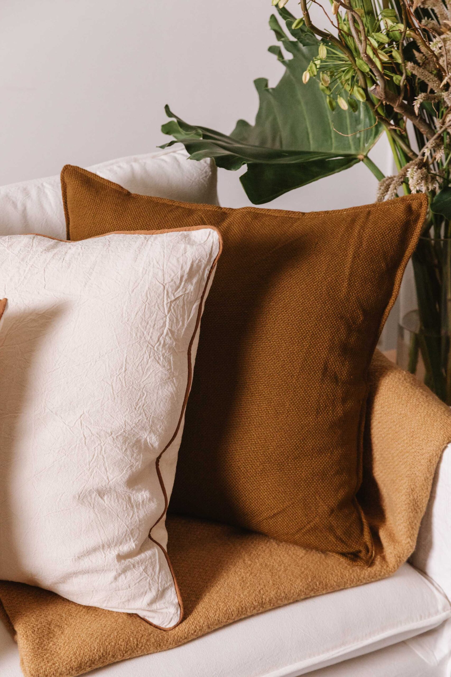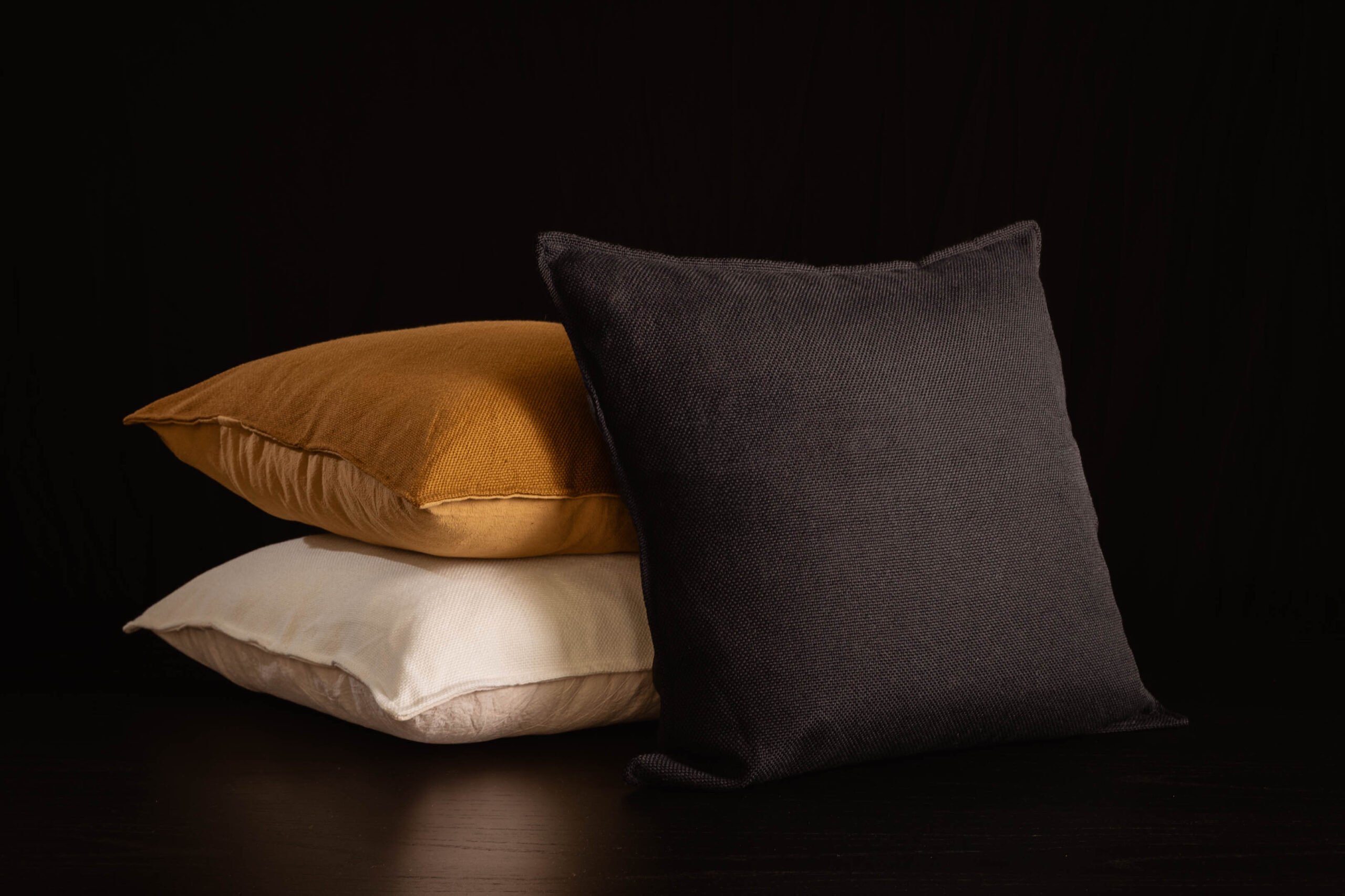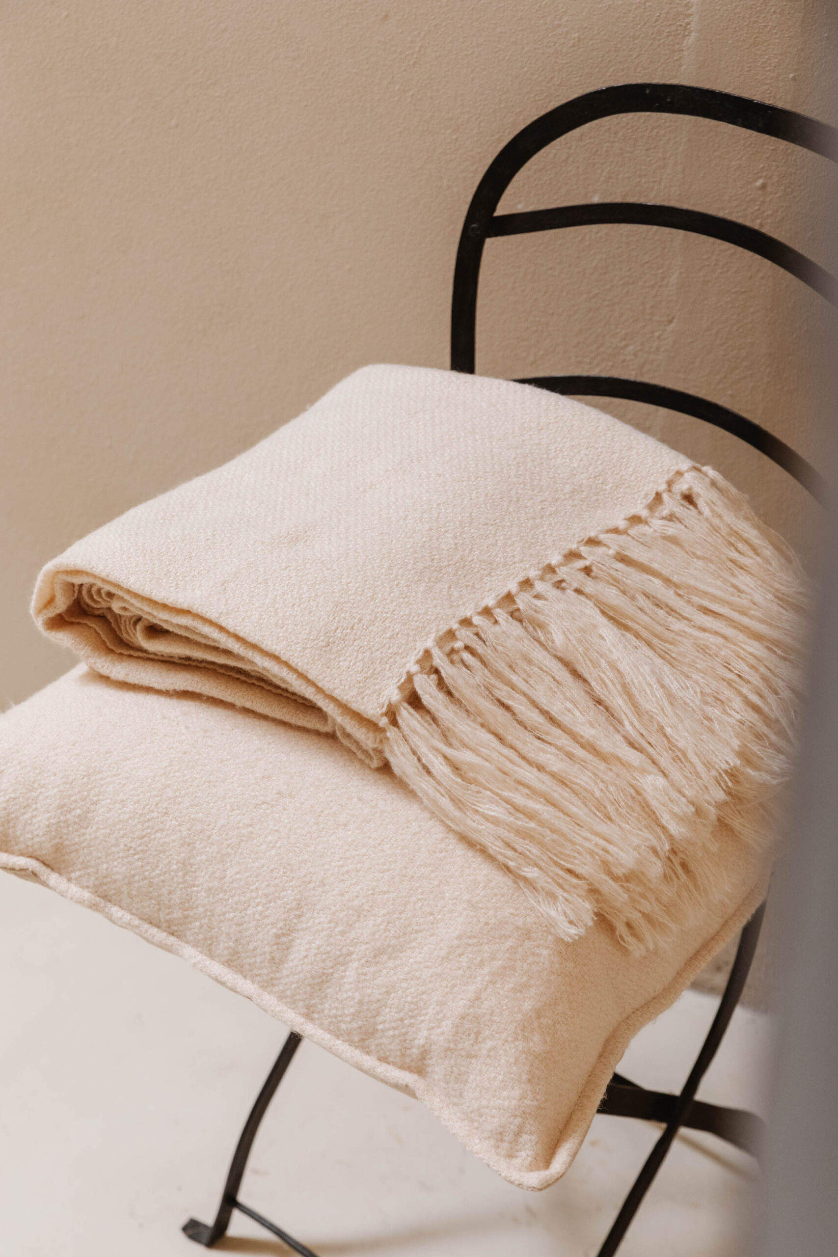 Almohadón de Lana Merino, tejido en telar, con espalda de lienzo a tono.