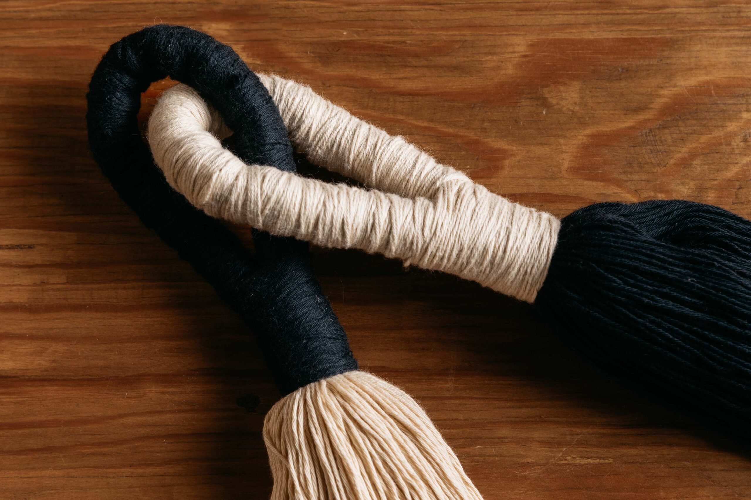 Borlas de hilo de algodón, unidas en sus colores opuestos.