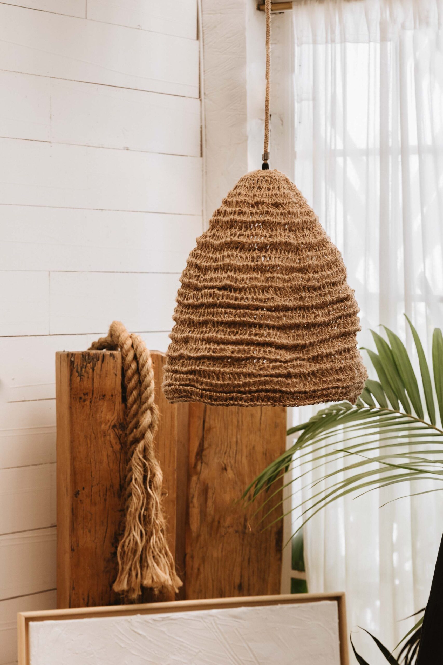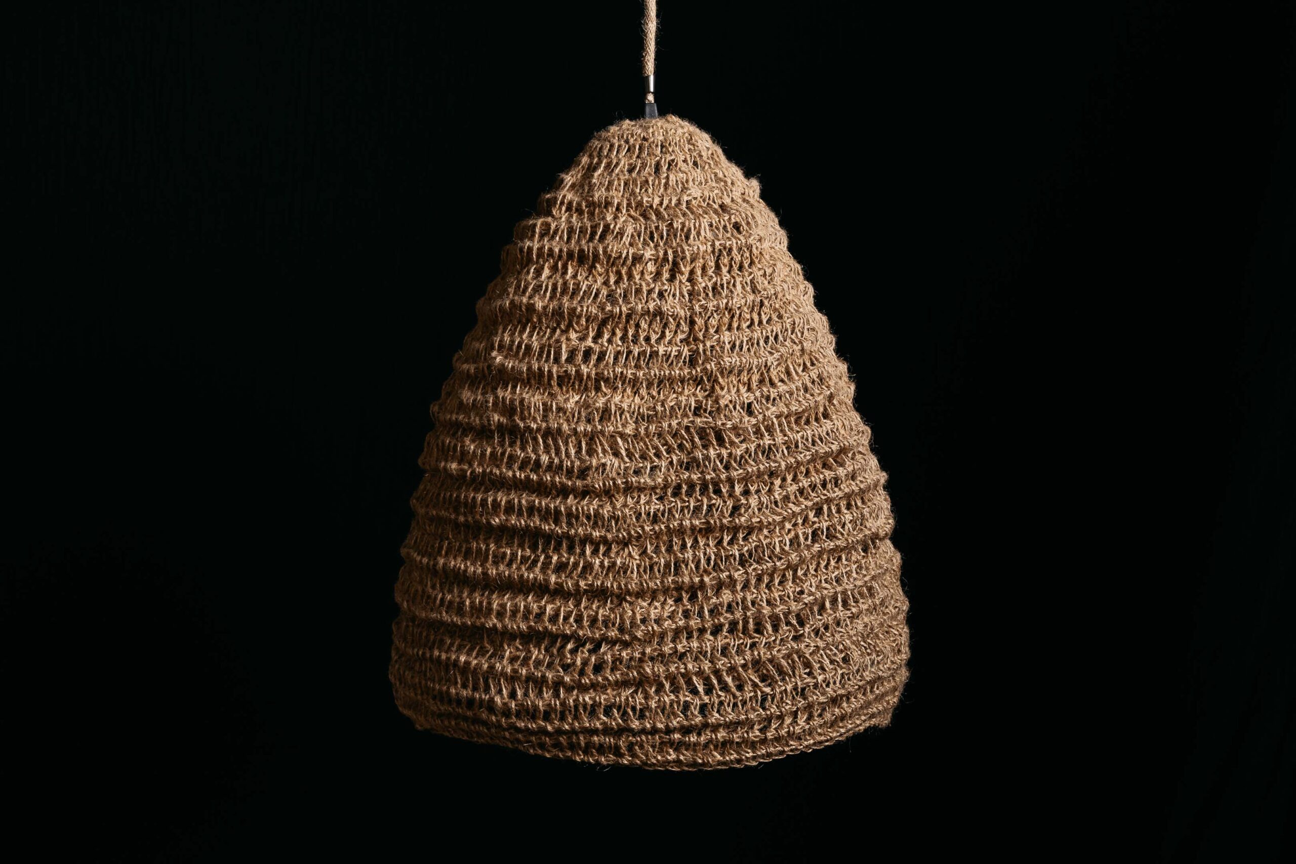 Lámpara con estructura de hierro, tejida a mano con Hilo de Yute