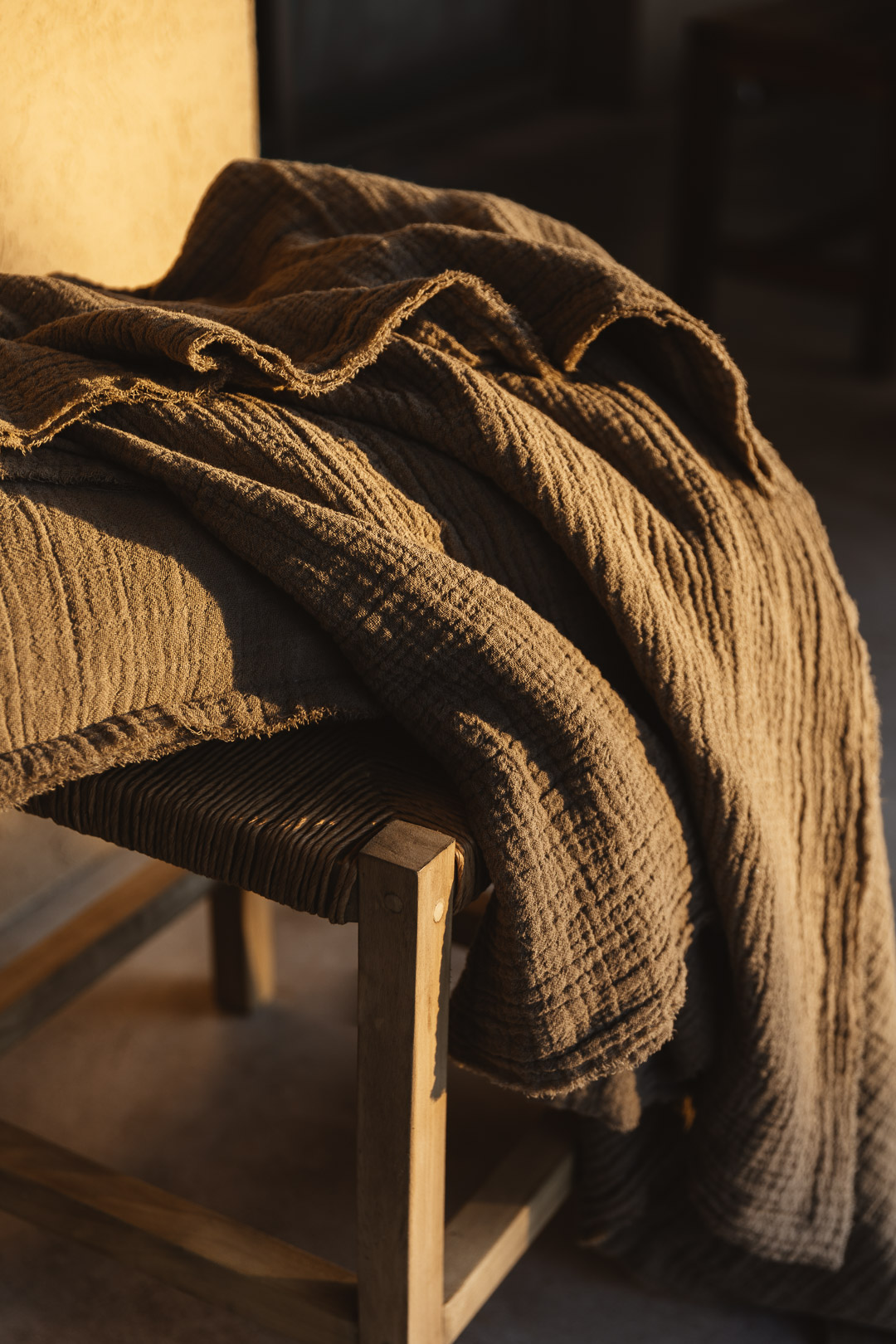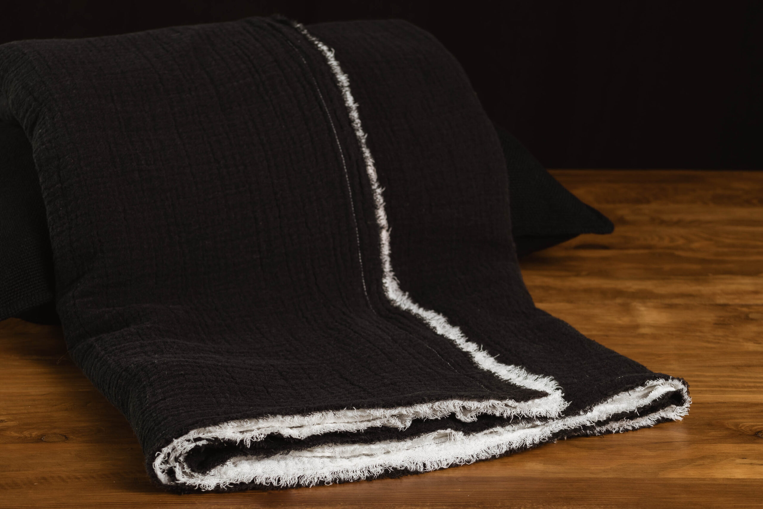 Manta de gasa doble, con desflecado en su perímetro