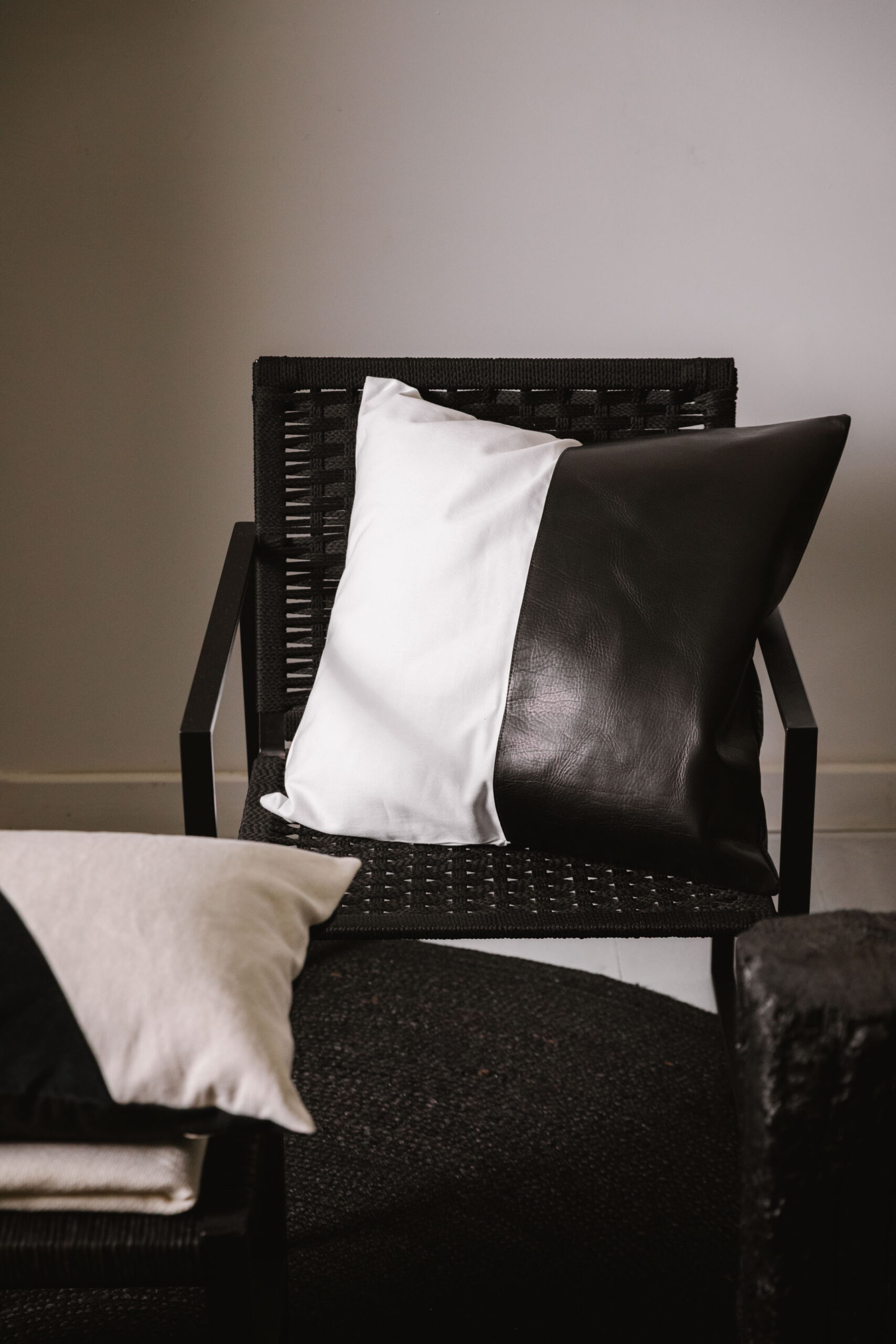 Almohadón mitad Cuero, mitad Gabardina.