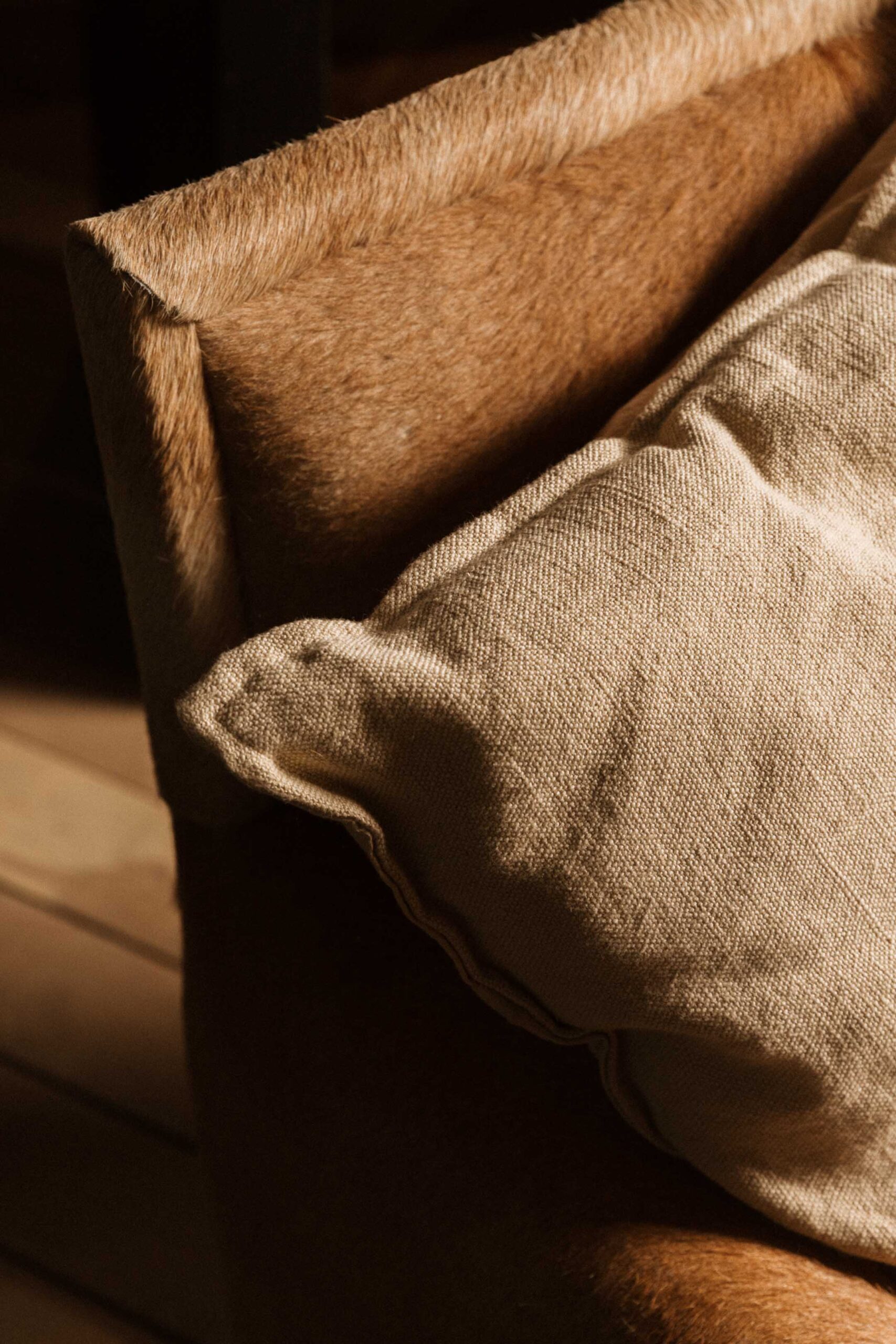 Almohadón con tapa de Lino rústico y espalda de lienzo a tono.