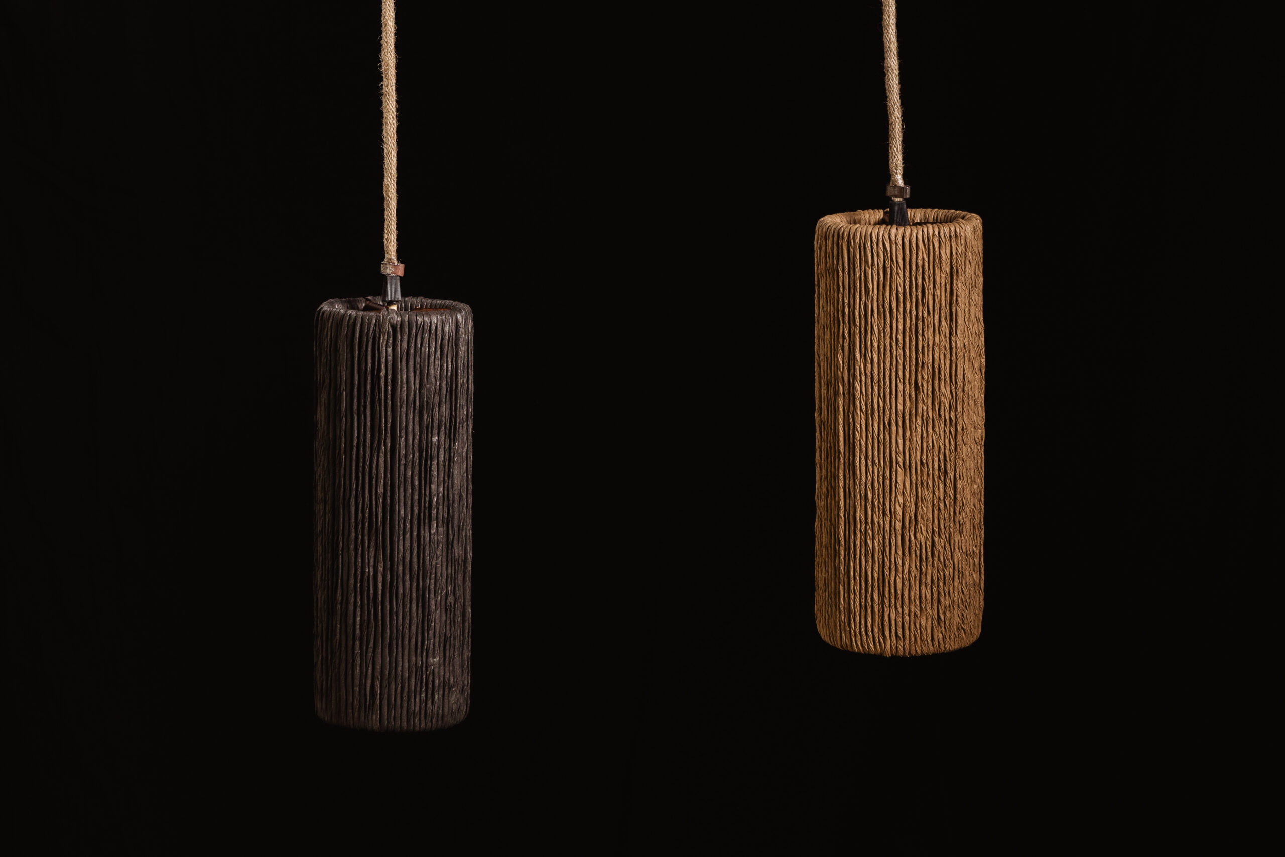 Lámpara con estructura de hierro, cubierta de hilo de papel.