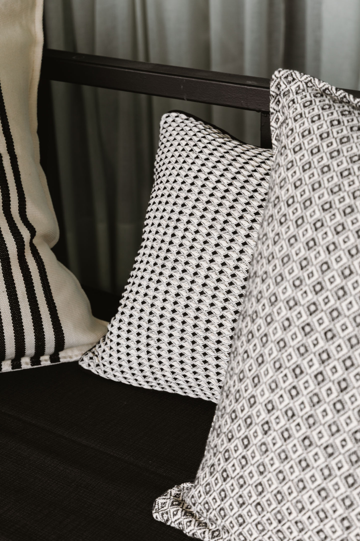 Almohadón Cuadrillé, con espalda de lienzo a tono.